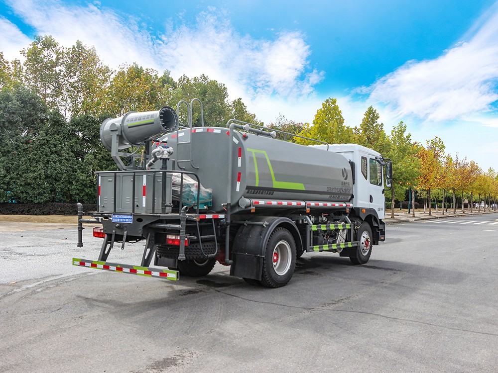 綠化噴灑車標配前噴(鴨嘴)、后對沖、 后灑、側噴、后置式工作平臺,平臺上配置綠化水炮(可 360°旋轉,既可以調 成柱狀,也可以調成霧狀),配備優質大功率專用灑水泵(可自吸自排,可從河 里或池塘抽水到罐體),取力器,雜物過濾網,消防接口,自流球閥系統、取力 器、球閥、濾網均為國家標準產品,主管道加粗,法蘭墊、法蘭盤加厚,大通徑 球閥。整體具備性能優良安全可靠、效率高、流量大、維修方便等特點。