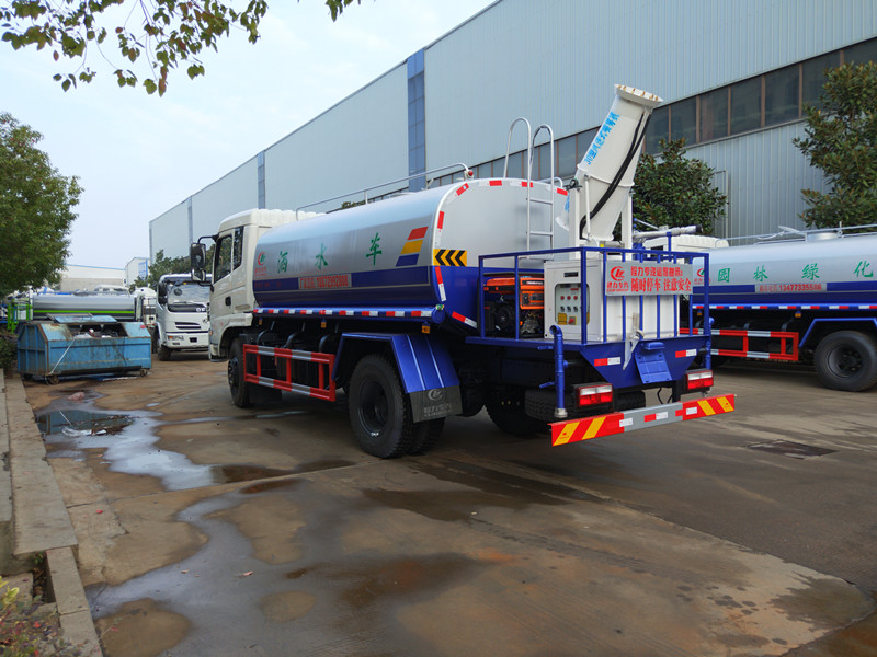 采用橢圓形或者方圓形結構的水罐,整車造型新穎、美觀大方,全部采用鍍鋅管道,管道上有壓力表,方便操作人員隨時掌握泵的運轉情況。駕駛室和罐體中間有量管,使水罐內的水量一目了然。罐體尾部有操作平臺,平臺有安全防護欄保障操作人員的安全,平臺上有爬梯方便操作人員上下車觀察罐體內的情況。