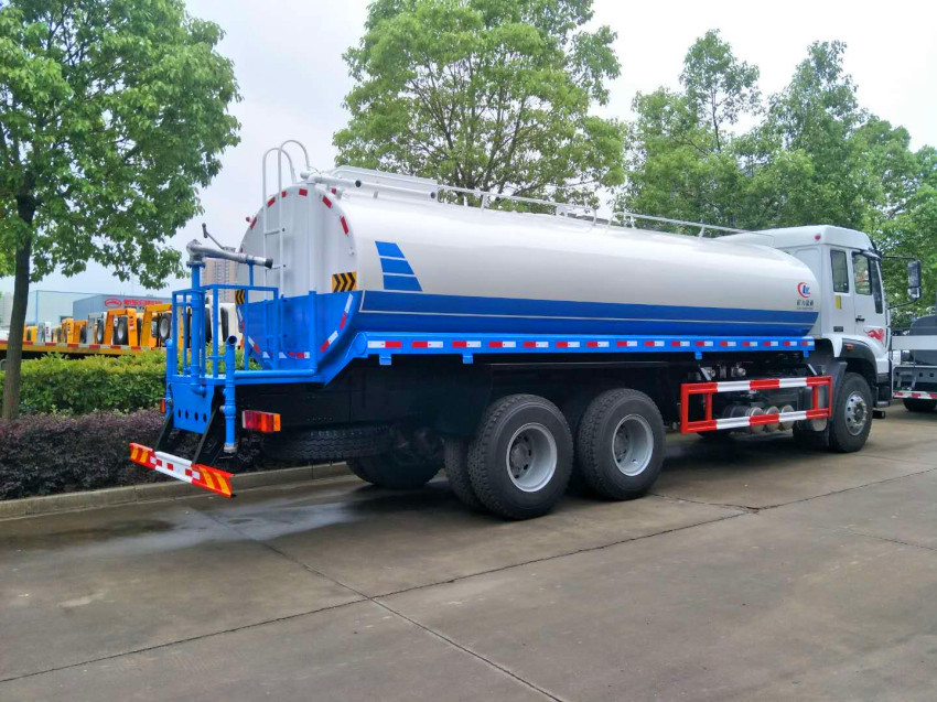 有免征公告,可以免購置稅,嚴(yán)格按照公告尺寸生產(chǎn),罐體實際容積20方,罐體采用國標(biāo)武鋼碳鋼板材制作,帶泵,可泵進泵出,帶前沖、后灑、側(cè)噴,后工作平臺帶綠化高射炮。平臺上安裝鋼制芯專用大功率綠化灑水高炮(炮有直流狀、大雨、毛毛雨、霧狀可調(diào)節(jié),可噴灑農(nóng)藥),配備大功率專用灑水泵,帶消防接頭,帶自流閥,帶自吸功能。同時可以用于臨時應(yīng)急消防灑水,每輛灑水車都配備消防專用接口。由發(fā)動機帶動變速箱,變速箱上安裝的取力器帶動灑水泵,灑水泵產(chǎn)生主要動力,將罐體內(nèi)部的液體通過管網(wǎng)噴灑出去。自吸高度:≤7m,灑水寬度:≥20m,最大射程:≥28m;可調(diào)節(jié)成柱狀,射程≥28m;也可調(diào)節(jié)成霧狀,射程≥15m。前噴后灑,前裝有鴨形噴嘴或圓頭沖嘴,后面裝有圓柱開灑水噴嘴或蓮蓬頭噴嘴,后部有一工作平臺,裝配有高壓水炮。后部還可裝8個噴嘴(選裝)噴水器一般用于沖洗街道?蛇x配藥盤、打藥機。也可加裝藥盤、藥泵、罐內(nèi)防腐防銹、多方位進出水接頭、電磁閥、氣動閥等先進設(shè)施,以滿足不同用戶需求。