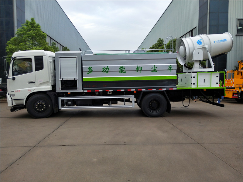 湖北運隆生產(chǎn)的環(huán)保多功能抑塵車采用車底盤動力通過液壓系統(tǒng)驅(qū)動霧炮 ,實現(xiàn)了大范圍工作范圍無極調(diào)速控制,按照實際需求分配動力,大幅降低能耗,減輕整車無效載荷,可旋轉(zhuǎn)360度,射程規(guī)格有20、30米、40米、50米、60米、70米、80米90米、100米、120米、150米等,普通灑水車只能對地面的浮塵進(jìn)行沖清,而這種新型環(huán)保多功能抑塵車具有強(qiáng)大灑水車的噴霧降塵功能,能360度全方位送風(fēng)霧化降塵,用于降低 PM10、PM2.5,被譽(yù)為“PM2.5治理神器”,通過把水轉(zhuǎn)化為水霧的形式,直接對大氣中的粉塵進(jìn)行抑制,這是一般灑水車無法做到的.