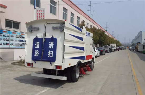 2、掃路車采用吸掃結合的方式收集垃圾,濕式除塵、電液控制,液壓傾翻卸料的作業方式對路面進行清掃作業。