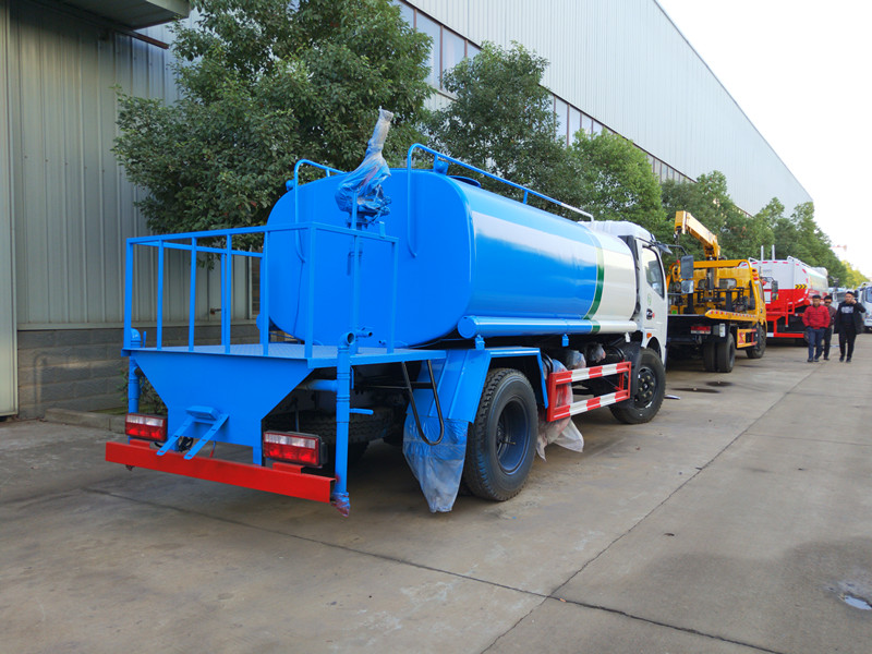 整車可加裝消防接頭、自流閥及自吸功能,加水方便,滿足不同條件下的各種要求,1個爬梯小型灑水車罐體厚度為十足十量4MM,自吸高度大于等于7m,前沖后灑射程大于14米,揚塵大于22米。小型消防灑水車采用上海合資消防泵,揚塵 大可達到50米,幾乎相當于一輛消防車。