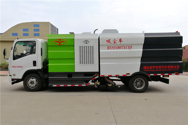 五十鈴掃路車采用國五/國六二類底盤改裝,加裝副發動機、風機、清水箱、垃圾箱、左右立掃、后置吸盤,掃盤降塵系統,液壓系統、專用裝置電控系統和副車架等改裝而成(可加裝前沖后灑,可以根據客戶要求做成方形、圓形箱體。)