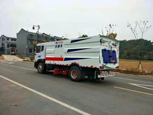 清掃車上裝配置:本洗掃車采用解放型國五二類底盤改裝,加裝康明斯170馬力副發(fā)動機、北玻臺信大功率耐磨免維護離心風機、16MPa高壓水泵、8.5/9.5立方米清水箱、7立方米垃圾箱、左右立掃、帶噴水桿的寬吸嘴、低壓沖洗系統(tǒng)、垃圾箱自潔,掃盤降塵系統(tǒng),液壓系統(tǒng)、專用裝置電控系統(tǒng)和副車架等改裝而成。