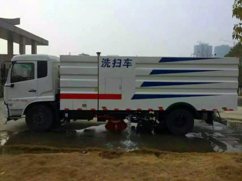 4、東風12方掃路車采用吸掃結合的方式收集垃圾,濕式除塵、電液控制,液壓傾翻卸料的作業(yè)方式對路面進行清掃作業(yè)。