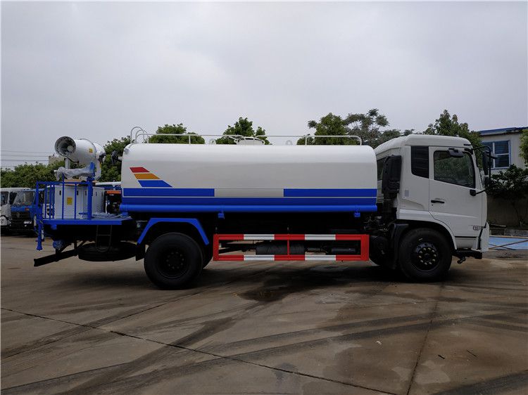 4.東風天錦灑水車(罐體容積8000--12000L)該車采用東風康明斯170馬力柴油發動機和東風商用車140馬力柴油發動機,9.00-20輪胎,帶方向助力,帶空調,斷汽剎, 5檔變速箱,4.5噸前橋,9噸后橋,整車外形尺寸:長×寬×高(mm)8500×2390×2900,總質量(kg):16000,額定質量(kg):9300,整備質量(kg):6505,該車罐體有效容積:10噸-12噸,該車帶國家免征公告。
