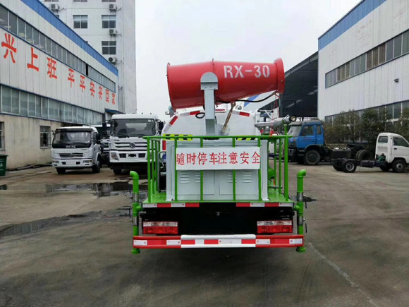 程力灑水車配前沖(噴)、后灑、帶側噴(花灑)、帶后工作平臺、平臺上安裝綠化灑水高炮(炮噴射形狀可調節:直沖、大雨、中雨、毛毛雨、霧狀、可連續調節,360°旋轉),配消防接口,自流閥,濾網,帶自吸自排功能。