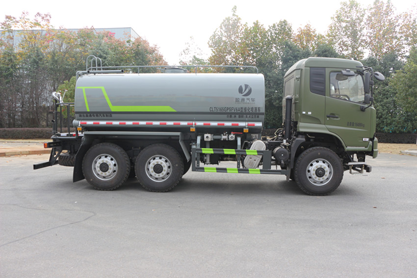 功能配置:帶前部沖洗路面噴灑裝置、后部扇形降塵噴灑裝置,兩側面噴灑裝置,帶后部工作平臺、平臺上安裝綠化灑水炮(炮噴射形狀可調),可調直沖狀、大雨、中雨、毛毛雨,可連續調節,射程可達28米,垂直吸程6.5米,揚程14米,帶消防接口、自流閥,可自吸自排。