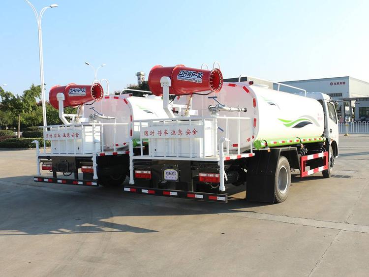 霧炮灑水車上裝配置:碳鋼4mm厚,實際容積9立方,前沖、后灑、側噴、平臺高炮,大通徑球閥,自吸式灑水泵,LED邊燈,音樂喇叭,新規防飛濺,選配30米霧炮機、可抑塵、可噴藥打藥消毒等。