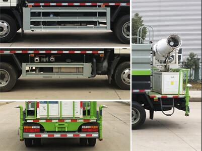 霧炮車專用配置: 配備全國評比質量第一的(日本技術)大功率專用灑水泵、取力器、球閥、濾網、輸水管道、灑水裝置等部件組成。水泵、取力器、球閥、濾網均為國家標準產品,具有性能優良,工作可靠、效率高、流量大、維修方便等特點。