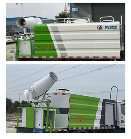 霧炮車專用配置: 配備全國評比質量第一的(日本技術)大功率專用灑水泵、取力器、球閥、濾網、輸水管道、灑水裝置等部件組成。水泵、取力器、球閥、濾網均為國家標準產品,具有性能優良,工作可靠、效率高、流量大、維修方便等特點。