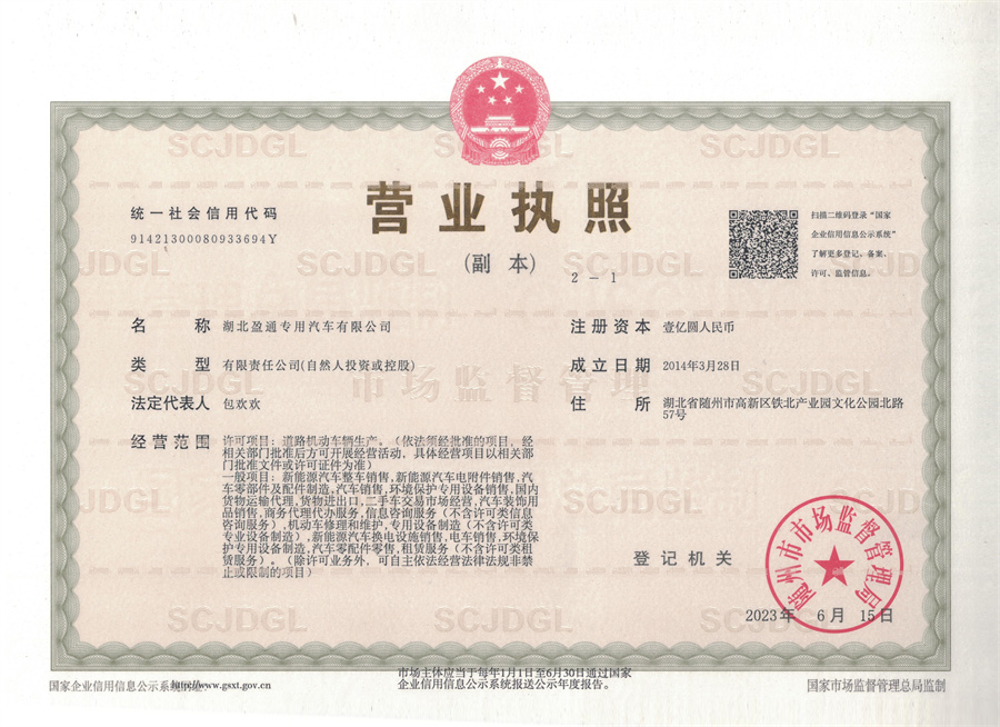 企業(yè)名稱 湖北盈通專用汽車有限公司