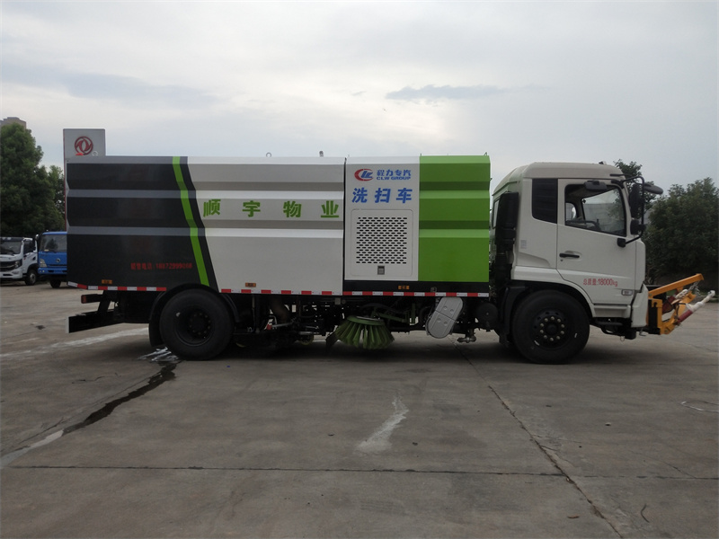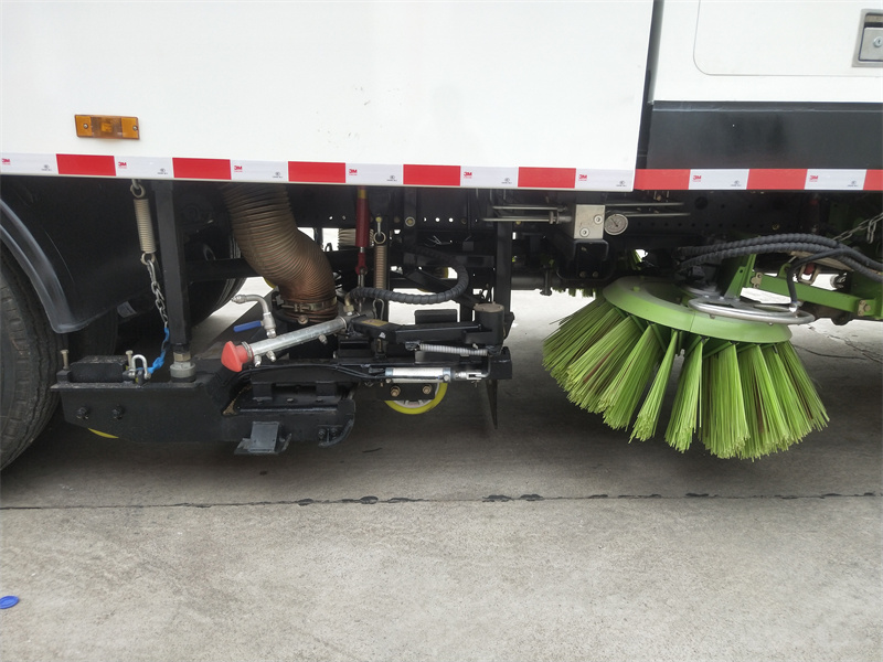 洗掃車采用中置兩刷盤,中置寬吸盤,配上具有防撞避障功能的V型高壓沖水架,組成一條大于3.5米的沖洗清掃帶。采用康明斯EQ6BT5.9-118型副發(fā)動機現(xiàn)階段亦有采用電動作為動力的驅(qū)動裝置橫置在車架中部,具有氣動離合裝置控制的抽吸風機布置在動力倉的左側(cè)。采用不銹鋼材料加工而成的水箱與垃圾箱均為采用方形瓦棱結(jié)構(gòu)。水箱分為兩部位,一部分為前置獨立水箱,裝配在動力倉的前部;另一部分為設(shè)置在垃圾箱前部的水箱,可隨垃圾箱與動力倉罩同時升降。具有舉升功能的垃圾箱內(nèi)裝配有高壓沖洗噴頭,使得卸料更為輕松、干凈徹底。能夠隨垃圾箱體舉升的動力倉罩可使動力系統(tǒng)的維修保養(yǎng)極為便利。采用歐美地區(qū)的名優(yōu)配套部件,使得整車性能更為優(yōu)良,工作更為可靠。