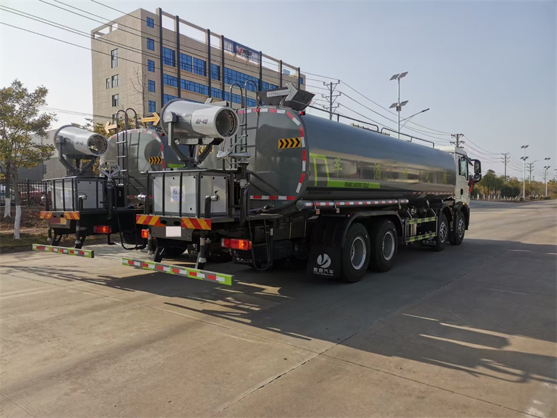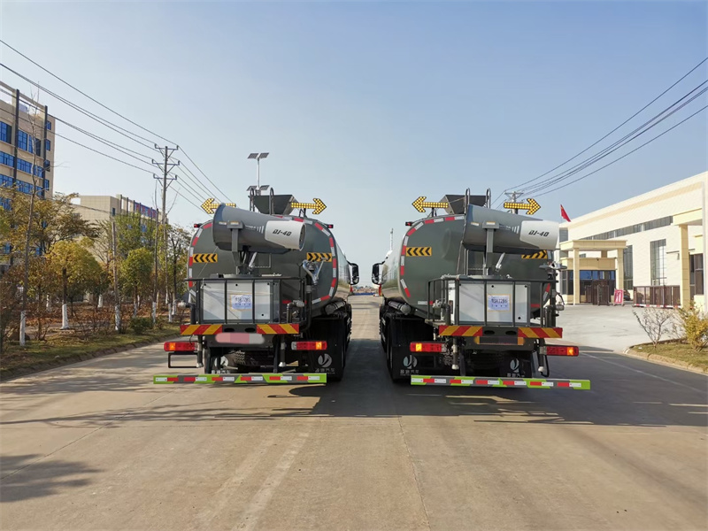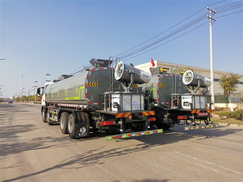 縱昂牌CLT5311TDYZZ6型多功能抑塵車標(biāo)配前噴(鴨嘴 ) 、后 對沖、后灑、側(cè)噴、后置式工作平臺,平臺上配置綠化水炮(可 360°旋 轉(zhuǎn), 既可以調(diào)成柱狀,也可以調(diào)成霧狀),配備優(yōu)質(zhì)大功率專用灑水泵(可自吸 自 排,可從河里或池塘抽水到罐體),取力器,雜物過濾網(wǎng),消防接口,自流球閥 系統(tǒng)、取力器、球閥、濾網(wǎng)均為國家標(biāo)準(zhǔn)產(chǎn)品,主管道加粗,法蘭墊、法蘭盤 加厚,大通徑球閥。整體具備性能優(yōu)良安全可靠、效率高、流量大、維修方便 等特點。