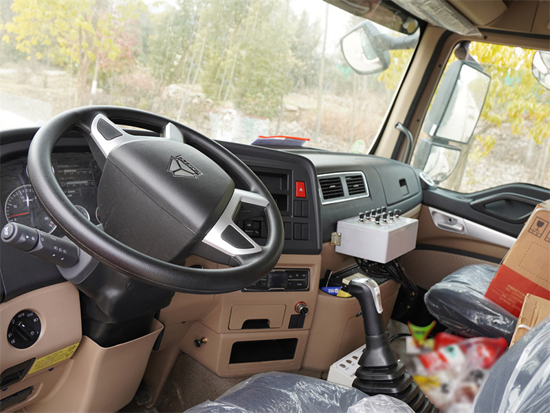 二.產品配置 底盤采用重汽豪沃TX專用底盤,豪沃TX駕駛室采用德國曼TGA駕駛室 本體改進而成,不僅美觀大方,且舒適實用;德國曼350馬力發動機 , 德國技術動力強勁且油耗低;軸距1850+3800+1350,輪胎11.00R 鋼絲胎,豪沃9檔帶同步器變速箱,掛檔輕便;德國曼7.5噸雙前橋 和11噸雙后橋, 自重輕,承載強。