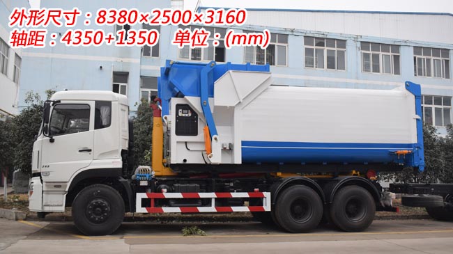 | 選裝配置 | 15~20立方米勾臂垃圾箱、12~15立方米聯體壓縮垃圾箱、后液壓支腿、空調、 | ||