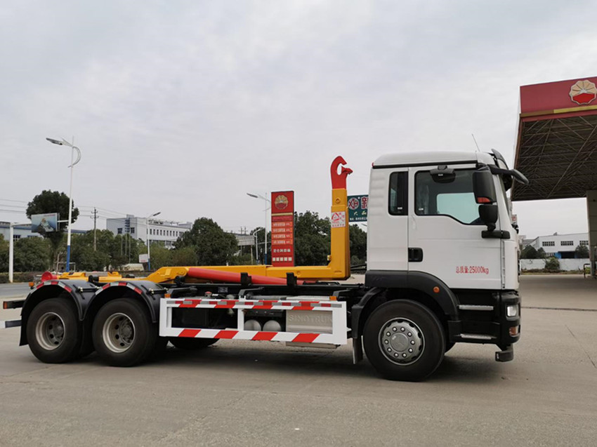 重汽汕德卡后雙橋勾臂式垃圾車(chē),濰柴270馬力,G5-M系列駕駛室,軸距:4300+1350,9檔變速箱,5.5噸前橋,11噸雙后橋,280大梁,11.00R20鋼絲胎,300L鋁合金油箱,四通道ABS,博世方向機(jī),氣囊座椅,電動(dòng)玻璃,中控鎖,搖控鑰匙,可調(diào)節(jié)多功能方向盤(pán),電動(dòng)調(diào)節(jié)帶加熱后視鏡。勾臂式垃圾車(chē)公告、環(huán)保齊全。