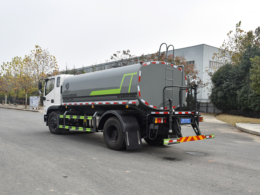 湖北盈通灑水車產品標配前噴(鴨嘴)、后沖、后灑、側噴、后置式工作 平臺,平臺上配置綠化水炮(可 360°旋轉,既可以調成柱狀,也可 以調成霧狀,更可以調成直沖狀、大雨、中雨、小雨、毛毛雨),配 備優質大功率專用灑水泵(可自吸自排,可從河里或池塘抽水到罐體), 取力器,雜物過濾網,消防接口,自流球閥系統、取力器、球閥、濾網 均為國家標準產品,主管道加粗,法蘭墊、法蘭盤加厚,大通徑球閥。 整體具備性能優良安全可靠、效率高、流量大、維修方便等特點。