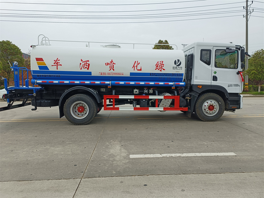 灑水車產(chǎn)品標(biāo)配前噴(鴨嘴)、后沖、后灑、側(cè)噴、后置式工作 平臺,平臺上配置綠化水炮(可 360°旋轉(zhuǎn),既可以調(diào)成柱狀,也可 以調(diào)成霧狀,更可以調(diào)成直沖狀、大雨、中雨、小雨、毛毛雨),配 備優(yōu)質(zhì)大功率專用灑水泵(可自吸自排,可從河里或池塘抽水到罐體), 取力器,雜物過濾網(wǎng),消防接口,自流球閥系統(tǒng)、取力器、球閥、濾網(wǎng) 均為國家標(biāo)準(zhǔn)產(chǎn)品,主管道加粗,法蘭墊、法蘭盤加厚,大通徑球閥。 整體具備性能優(yōu)良安全可靠、效率高、流量大、維修方便等特點。