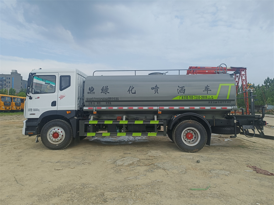 綠化噴灑車(chē)標(biāo)配前噴(鴨嘴)、后對(duì)沖、 后灑、側(cè)噴、后置式工作平臺(tái),平臺(tái)上配置綠化水炮(可 360°旋轉(zhuǎn),既可以調(diào) 成柱狀,也可以調(diào)成霧狀),配備優(yōu)質(zhì)大功率專(zhuān)用灑水泵(可自吸自排,可從河 里或池塘抽水到罐體),取力器,雜物過(guò)濾網(wǎng),消防接口,自流球閥系統(tǒng)、取力 器、球閥、濾網(wǎng)均為國(guó)家標(biāo)準(zhǔn)產(chǎn)品,主管道加粗,法蘭墊、法蘭盤(pán)加厚,大通徑 球閥。整體具備性能優(yōu)良安全可靠、效率高、流量大、維修方便等特點(diǎn)