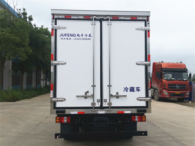 江鈴順達4米2冷藏車廂體配置為:采用斷橋隔熱工藝,整體框架結構制作,廂體內、外壁材料為玻璃鋼板,采用高密度保溫層,廂板內帶有骨架,廂體厚度80mm,門框,門飾件、包角全部使用不銹鋼材質。最新款鋁合金包邊型材,廂體內采用LED照明燈及廂體示寬燈;門框密封條為橡膠材質,后門梁帶加厚防撞塊,加厚型不銹鋼鉸鏈及鎖件。車體副梁采用510L高強度鋼制作,底板為鋁花紋板,車廂后門帶一個上車扶手,其余標配;