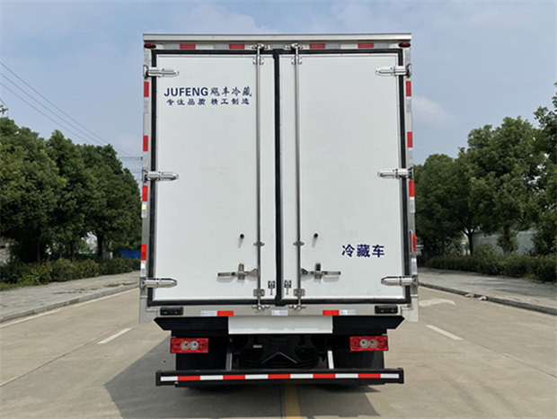 福田奧鈴3米7冷藏車廂體配置為:采用斷橋隔熱工藝,整體框架結構制作,廂體內、外壁材料為玻璃鋼板,采用高密度保溫層,廂板內帶有骨架,廂體厚度80mm,門框,門飾件、包角全部使用不銹鋼材質。最新款鋁合金包邊型材,廂體內采用LED照明燈及廂體示寬燈;門框密封條為橡膠材質,后門梁帶加厚防撞塊,加厚型不銹鋼鉸鏈及鎖件。車體副梁采用510L高強度鋼制作,底板為鋁花紋板,車廂后門帶一個上車扶手,其余標配;