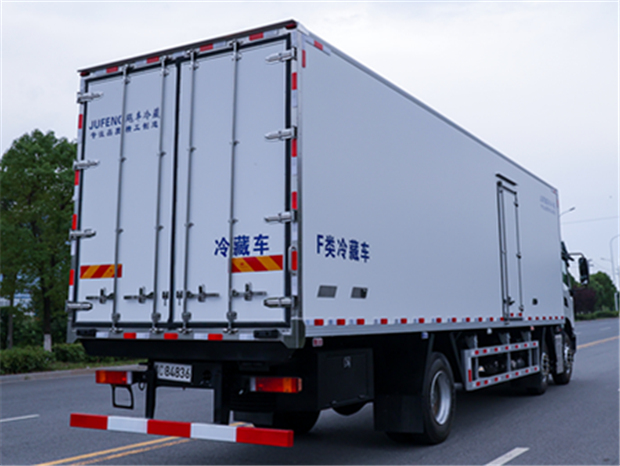 東風(fēng)天錦8米6冷藏車(chē)廂體配置為:斷橋隔溫工藝,整體結(jié)構(gòu)框架,內(nèi)外面料為3mm新款啞光玻璃鋼夾保溫層真空復(fù)合而成,廂體厚度為8cm,最新款鋁合金包邊型材,型材局部厚度為4mm(鋼制鉚釘加固),廂體內(nèi)部采用2個(gè)LED照明燈及廂體示寬燈,后門(mén)框不銹鋼材質(zhì),門(mén)框密封條為三元乙丙橡膠材質(zhì),加厚型不銹鋼合頁(yè)及鎖件;副梁為Q700車(chē)用大梁鋼,15mm厚大梁墊皮,加裝防撞膠塊,不銹鋼門(mén)鎖件,配后雙開(kāi)門(mén),副駕駛一側(cè)居中靠前開(kāi)單側(cè)門(mén)一個(gè),帶2個(gè)排水孔。