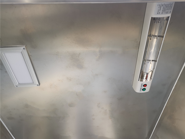 福特全順汽油版疫苗冷鏈車車廂配置: 保溫廂內(nèi)板為304不銹鋼板,夾保溫層制作,廂體底板和四周廂板安裝通風(fēng)槽。廂內(nèi)帶LED照明燈,溫濕度顯示記錄儀,紫外線消毒燈,外場照明燈燈配置。不銹鋼門框,鎖件。