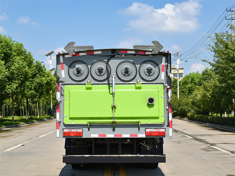 8. 尾部加有噴桿,通過電磁隔膜泵驅(qū)動(dòng)噴水路面抑塵。箱體上裝:優(yōu)質(zhì)碳銹鋼垃圾箱,3mm 邊板,4mm 底板,用于儲(chǔ)存垃圾,底板整體 折邊無縫焊接,杜絕了泄漏風(fēng)險(xiǎn)。簡潔美觀、抗變形性能強(qiáng)、結(jié)構(gòu)可靠性好,同時(shí)有 效增加實(shí)際裝填容積,超過同類產(chǎn)品,不易變形、耐磨損、耐腐蝕性強(qiáng)。 自卸:液壓缸舉升,垃圾箱自卸。 副發(fā)動(dòng)機(jī):副發(fā)動(dòng)機(jī)為風(fēng)機(jī)運(yùn)轉(zhuǎn)提供動(dòng)力。風(fēng)機(jī):副發(fā)動(dòng)機(jī)和風(fēng)機(jī)是清掃車的兩大核心部件、副發(fā)動(dòng)機(jī)為風(fēng)機(jī)運(yùn)轉(zhuǎn)提供動(dòng)力、使 得路面垃圾被吸入箱體內(nèi)部存放,從而實(shí)現(xiàn)路面清潔作業(yè)。風(fēng)機(jī)采用大功率耐磨離心 式免維護(hù)風(fēng)機(jī),無噪音,效率高風(fēng)量大,使用壽命長。 自動(dòng)離合器:減少風(fēng)機(jī)啟動(dòng)和停止時(shí)對(duì)發(fā)動(dòng)機(jī)的沖擊。離合器在使用過程中具有高度 耐磨、使用壽命長、低噪音、低油耗量和節(jié)省成本的優(yōu)點(diǎn)。 吸盤:吸盤內(nèi)置滾掃,有效清掃路面垃圾。 濾芯:豎直濾筒,方便清理、拆卸。 電磁閥:海普瑞斯電磁閥組是車輛液壓系統(tǒng)的核心部件,控制整車液壓驅(qū)動(dòng),雙向操 作按鈕,包括掃盤升降、吸盤升降、垃圾箱舉升、后門開閉等一系列機(jī)械操作,隨車 配備的有電磁閥控制盒罩,有效避免灰塵及垃圾物進(jìn)入盒內(nèi)。 側(cè)邊刷:增加作業(yè)寬度,并有效將垃圾掃入吸盤位置。 影像系統(tǒng):車體后方裝有監(jiān)視探頭,實(shí)時(shí)監(jiān)控作業(yè)情況并顯示在駕駛室內(nèi)顯示屏上, 最大限度的保證清吸效果。控制開關(guān):集成疊加設(shè)計(jì),PLC 駕駛室電液集中控制,方便操作。 電子隔膜泵:控制尾部噴水桿,噴水抑塵。 應(yīng)急系統(tǒng):可通過手動(dòng)應(yīng)急液壓泵來控制全車液壓系統(tǒng)。 尾部噴水:作業(yè)完成后,尾部抑塵。