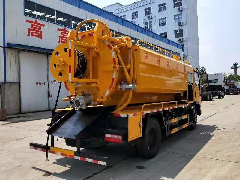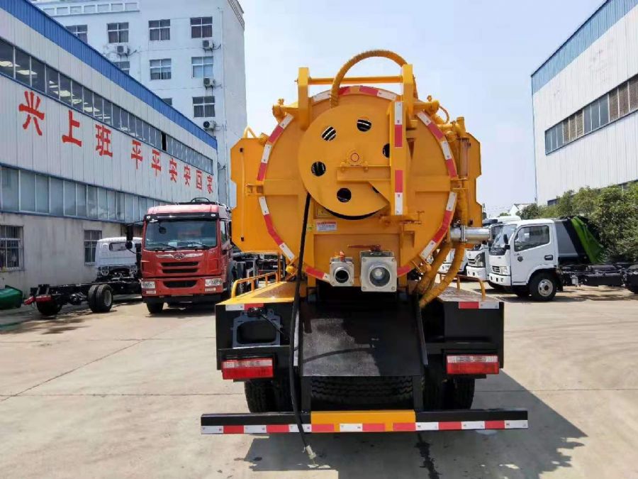 水罐3方,污罐7方,水罐采用4mm武鋼優質碳鋼制作,污罐采用6mm武鋼優質鋼板制作,配SK-9水循環泵/8噸油真空泵(根據客戶需求選裝),170流量高壓泵,24兆帕壓力,真空防溢閥,真空壓力表,視污窗,水罐焊接在罐體兩側,水污罐體可液壓舉升自卸,后開蓋可液壓開啟,配60米高壓軟管,10個大小不同高壓噴頭,8米吸污管,尾部100mm吸污口,100mm排污口(可根據客戶需求加大),帶免征,環保公告!!
