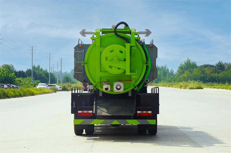 東風(fēng)12方清洗吸污車上裝說明:罐體容積約12立方左右,罐體采用Q235碳鋼板材,8.5立方左右容積,3.5立方容積,污水罐與清水罐可互通,罐體舉升,吸污口在主駕一側(cè),操作系統(tǒng)安裝在主駕一側(cè)工具箱內(nèi)。配SK-12水循環(huán)泵,天津雙耀215流量,22兆帕高壓泵。60米直徑19高壓管,高壓噴頭10個,尾部4寸吸污球閥,6寸排污球閥。加裝冬季防凍裂吹氣裝置,高壓管淋洗裝置,兩側(cè)平臺活性鏈接,方便拆卸維修,兩側(cè)水箱外部鏈接,不影響副梁承載,底部管道加裝濾網(wǎng)三通,頂部防溢閥加裝濾網(wǎng)三通,防止污物進入吸污泵,有效保護吸污泵,上部水箱可連接底部吸污泵水箱,方便用水,配送8米吸污管一根