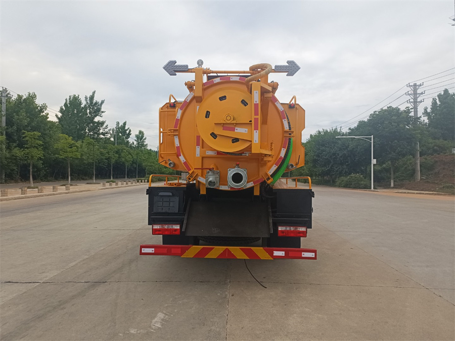 東風(fēng)12方清洗吸污車上裝配置:罐體采用優(yōu)質(zhì)碳鋼板制作,雙耀215L流量高壓泵,SK-12型水循環(huán)泵,配100米19mm高壓管,兩根8米吸污管。,帶氣吹水,水污互通,罐體后吸污口為DN100球閥,排污口為DN150孔徑球閥,罐體后蓋可液壓打開,罐體可液壓舉升。清水罐4方,污水罐8.5方