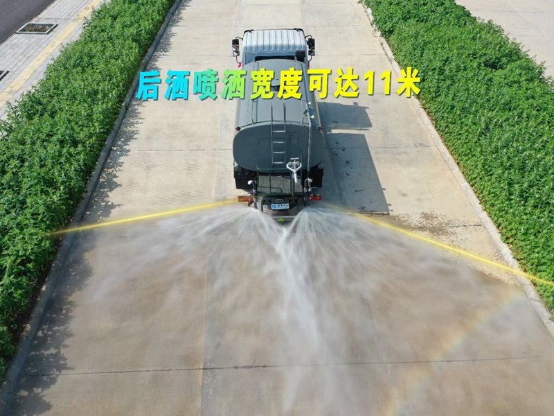 | 東風天錦4驅灑水車專用功能配置:罐體實際容積約為11立方米,(罐體有效參數9立方米、額定載質量8575kg、)采用武鋼優質碳鋼板卷壓成型。配備專用灑水泵,自吸自排,前噴后灑、側噴、后工作平臺及灑水高壓炮。灑水泵自吸高度為6米左右,整車灑水寬度14米左右,后工作平臺水炮可調成:直沖狀、大雨、中雨、小雨、毛毛雨,有效射程≥28米,整車帶接頭、水位計,自流閥。后工作平臺主管路帶1寸澆花接口,附送2根3米水管,1個爬梯,兩側及后保險杠。 |