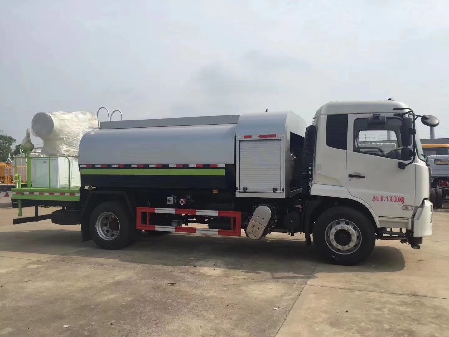 | 整車(chē)說(shuō)明: | 專(zhuān)用裝置為抑塵霧炮,用于城市抑塵。整車(chē)長(zhǎng)/軸距/后懸對(duì)應(yīng)關(guān)系為(mm):7890/3950/2540;8300/4200/2700;8700/4500/2800;9150/4700/3050;9150/4700/3020;9600/5000/3200;9900/5300/3200;10250/5800/3050.防護(hù)材料:Q235A碳鋼,連接方式:左右側(cè)面采用焊接連接。后下部防護(hù)采用螺栓連接,后部防護(hù)斷面尺寸(mm):120×50,后部防護(hù)離地高度(mm):490。ABS型號(hào)/生產(chǎn)廠家:3631010-C2000/東科克諾爾商用車(chē)制動(dòng)系統(tǒng)(十堰)有限公司,ABS 8/東科克諾爾商用車(chē)制動(dòng)系統(tǒng)(十堰)有限公司, 4460046450/威伯科汽車(chē)控制系統(tǒng)()有限公司。隨底盤(pán)選裝駕駛室。選裝霧炮型號(hào):WF-60/WF-80/WF-100所對(duì)應(yīng)的整備質(zhì)量分別為:9650kg/10600kg/11300kg。選裝外形圖片。 | ||