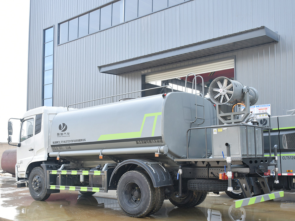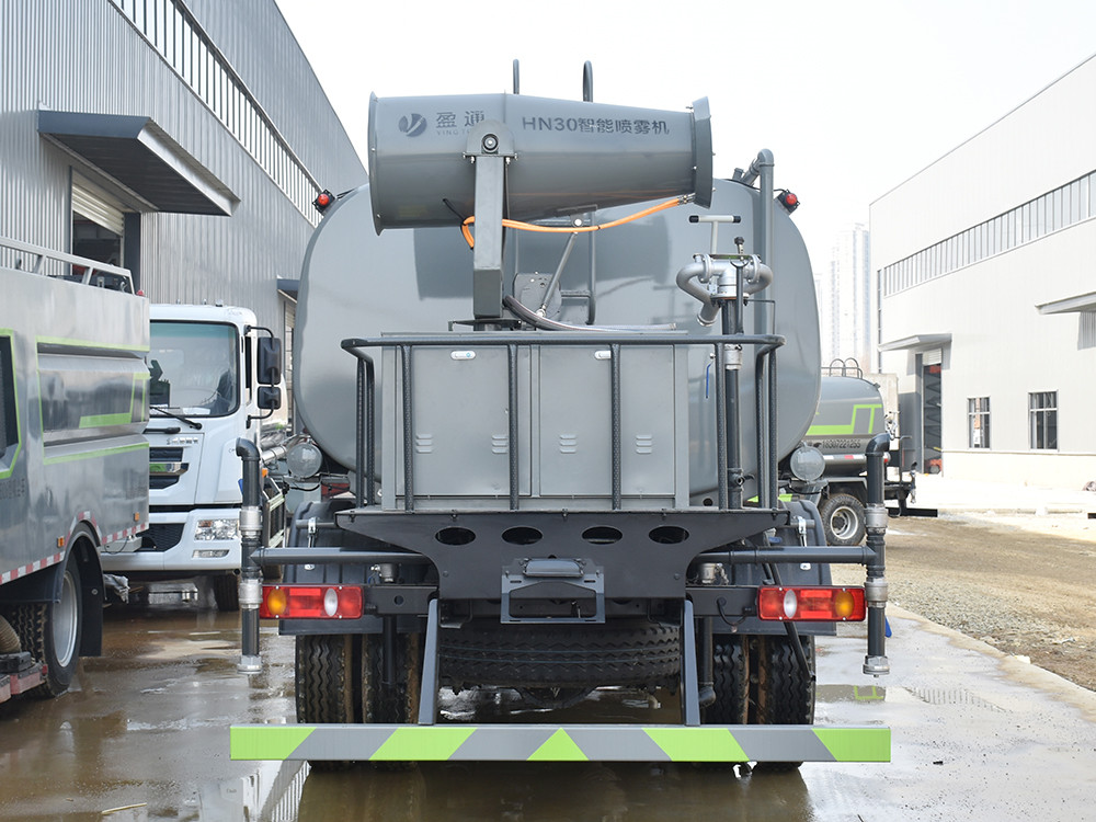 東風天錦 12 方抑塵車-灑水車產品配置 1.底盤配置: 發動機康明斯 210 馬力(6 缸),東風 6 檔變速箱,D530 排半 標準頂,4.5T 前橋,9T 后橋,10.00 鋼絲胎,軸距 4700,250 雙層大 梁,斷氣剎,空調,電動玻璃2.上裝配置: 1、罐體約為 12 方,可加裝 30-40 型霧炮 2、邊燈帶電,罐體尾部上方標配 2 個紅色示寬燈, 3、標配前噴為鴨嘴直沖,標配后沖,用戶可根據自己的需求,來調 整對沖位置。 4、花紋防滑平臺,炮筒后蓋為定制型螺栓卡扣, 5、前噴、后沖、后灑、側噴,綠化高炮開關球閥均采用 50 大通經 不銹鋼球閥, 6、新式軸承式水炮,更加耐用, 7、60-90 型水泵, 8、防腐法蘭墊片, 9、鋁制后灑,不易炸開 10、罐體自動焊(美國林肯焊機及電源),拼板自動焊接,封頭環 縫焊接,無氣孔,焊縫美觀。 11、側護網、后保險杠、均為螺栓連接,方便拆卸,維修方便。 12、塑料擋泥板,替代鐵擋泥板,更加輕便,用螺栓連接,方便拆 卸。 13、前部、后部主管連接處為 6 孔圓法蘭,不易沖墊