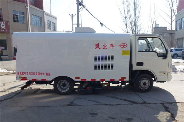 該吸塵車是采用躍進(jìn)型國(guó)五二類原廠汽車底盤改裝,加裝副發(fā)動(dòng)機(jī)、風(fēng)機(jī)、清水箱、垃圾箱、中置吸盤,工作視頻探頭,自動(dòng)脈沖清理功能,液壓系統(tǒng)、專用裝置電控系統(tǒng)和副車架等改裝而成。