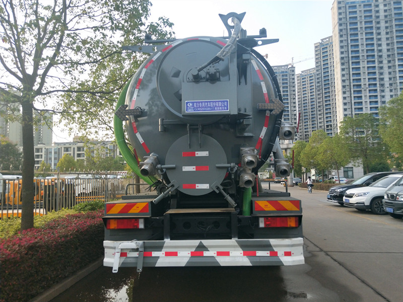 吸污車專用部分由取力器、傳動軸、真空吸污泵、壓力罐體、液壓部分,管網系統、真空壓力表、視糞窗、洗手裝置等組成,隨車配置大功率真空吸污泵和優質液壓系統,罐體封頭一次壓鑄成型、罐體可后開、雙頂自卸。罐內污物可通過后蓋直接傾倒,具有真空度高(比吸糞車的吸力更大)、噸位大、效率高、用途更廣泛的特點。