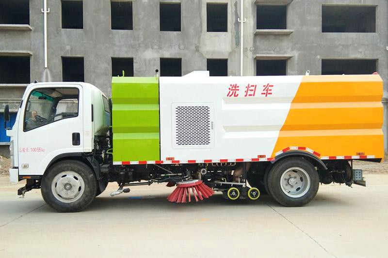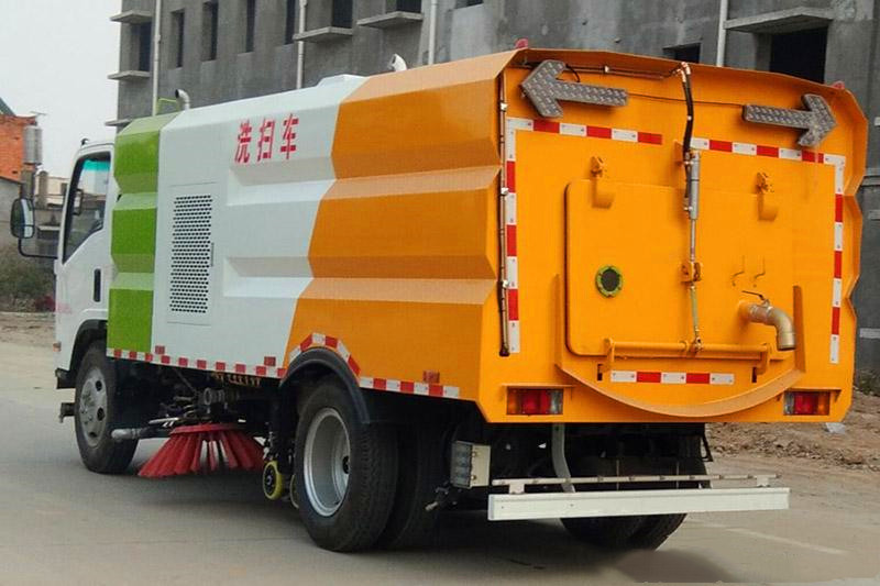8、五十鈴700P洗掃車|五十鈴5噸多功能洗掃車配備高低兩套水路系統,可實現高壓沖洗和低壓灑水的功能。